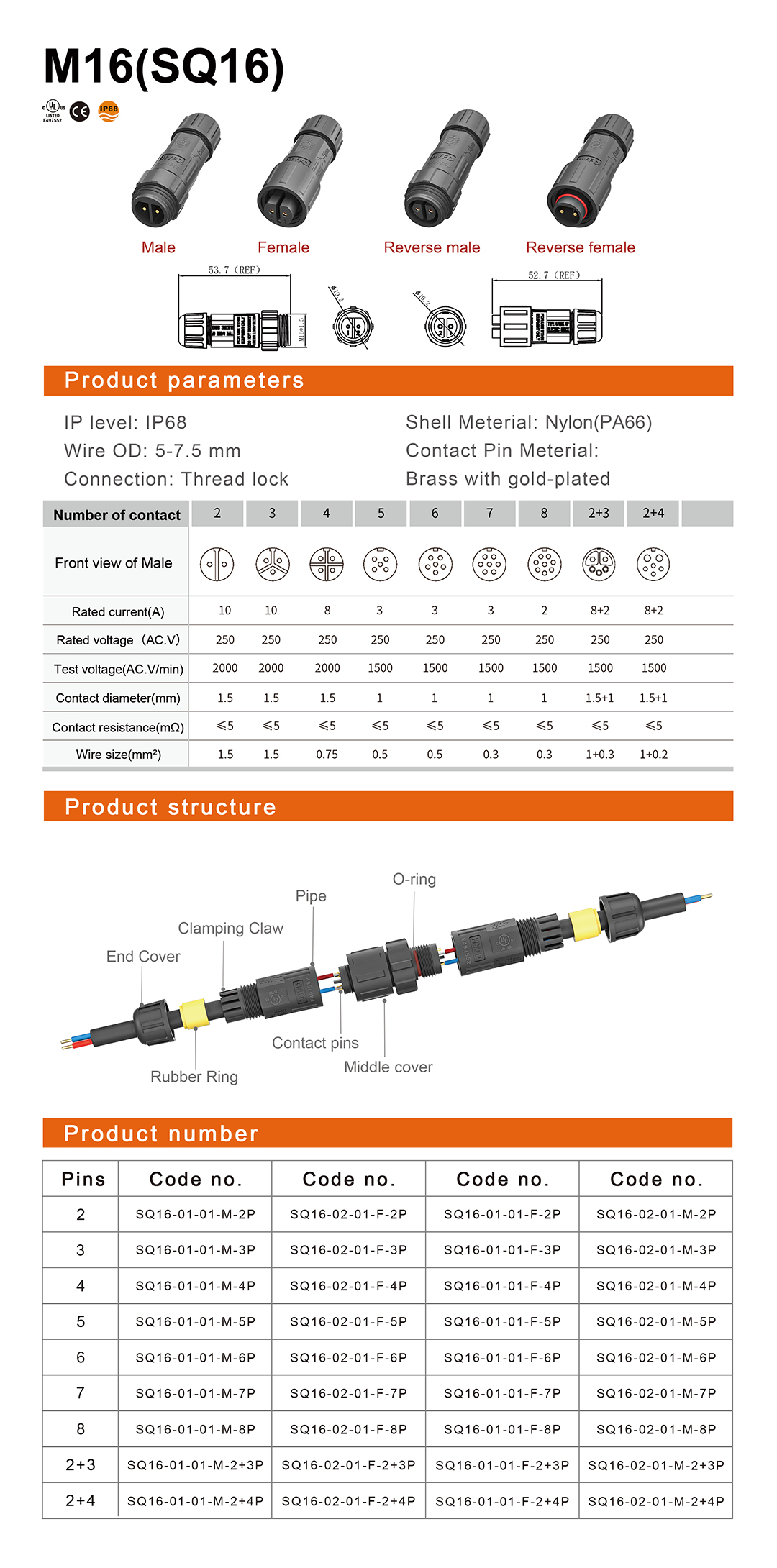M16 Waterproof Connectors-UL