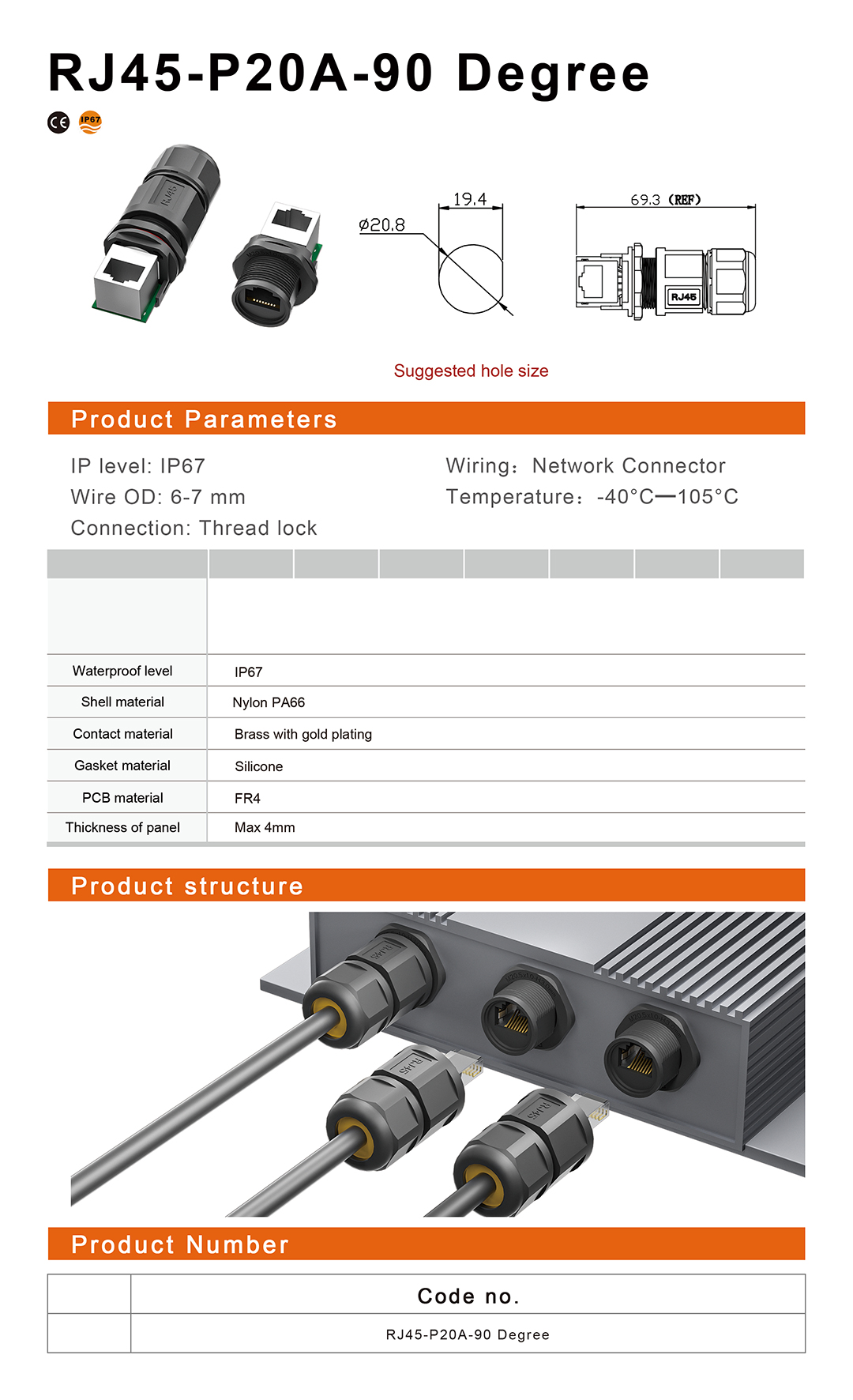 RJ45-P20A-90 Degree Connectors