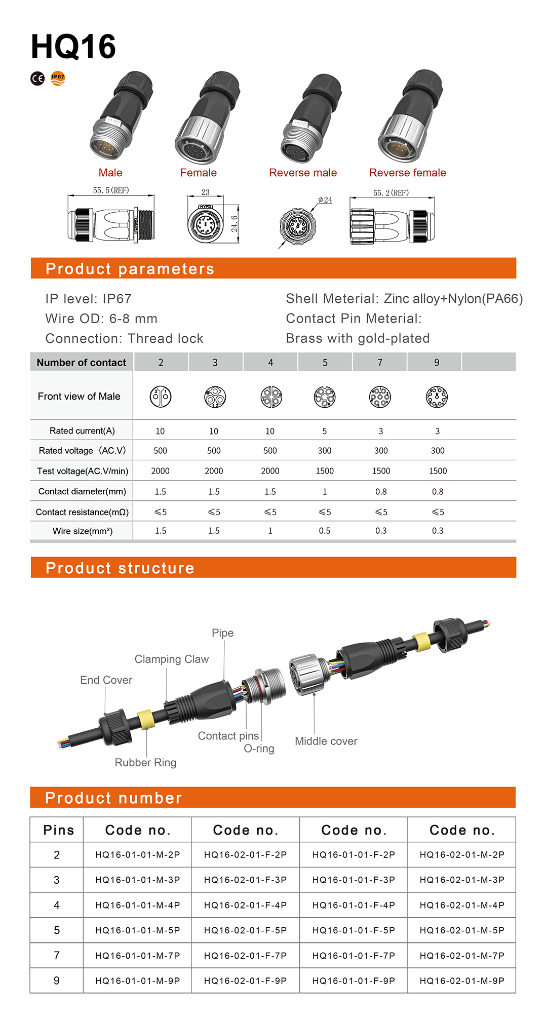 HQ16 Thread Lock Electric Led Aviation Connectors