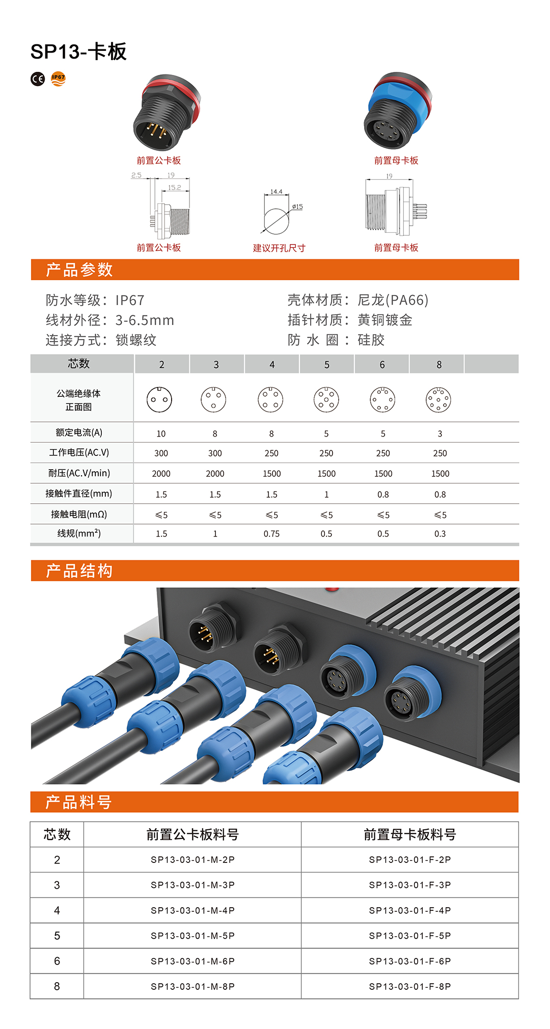 SP13锁螺纹防水连接器