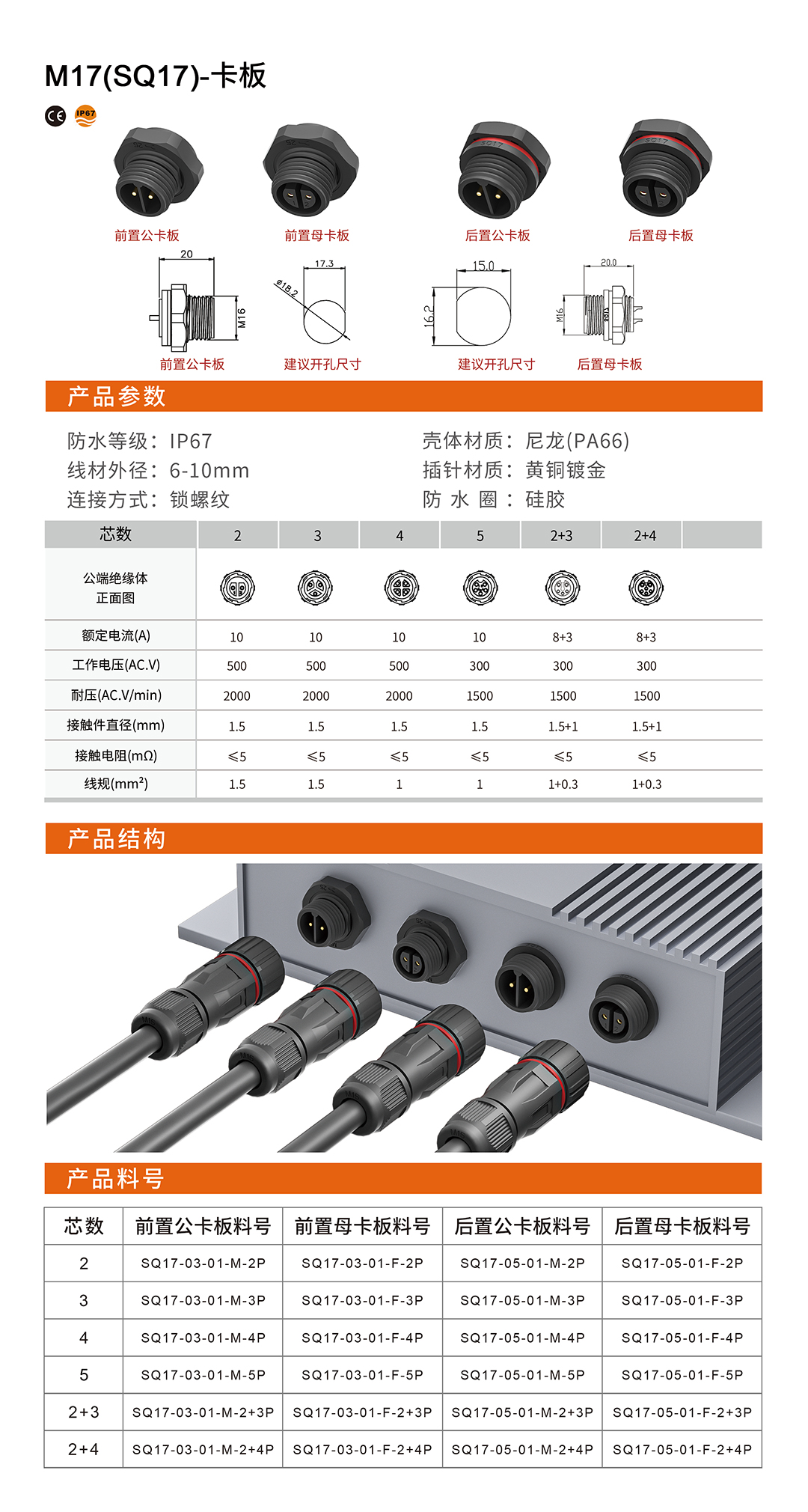 SQ17-组装锁螺纹防水连接器