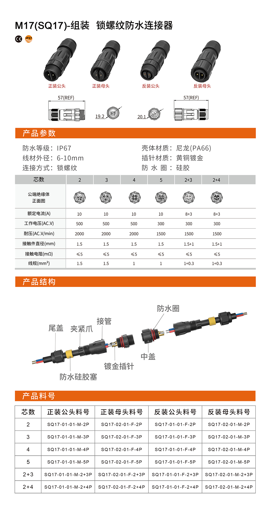 SQ17-组装锁螺纹防水连接器