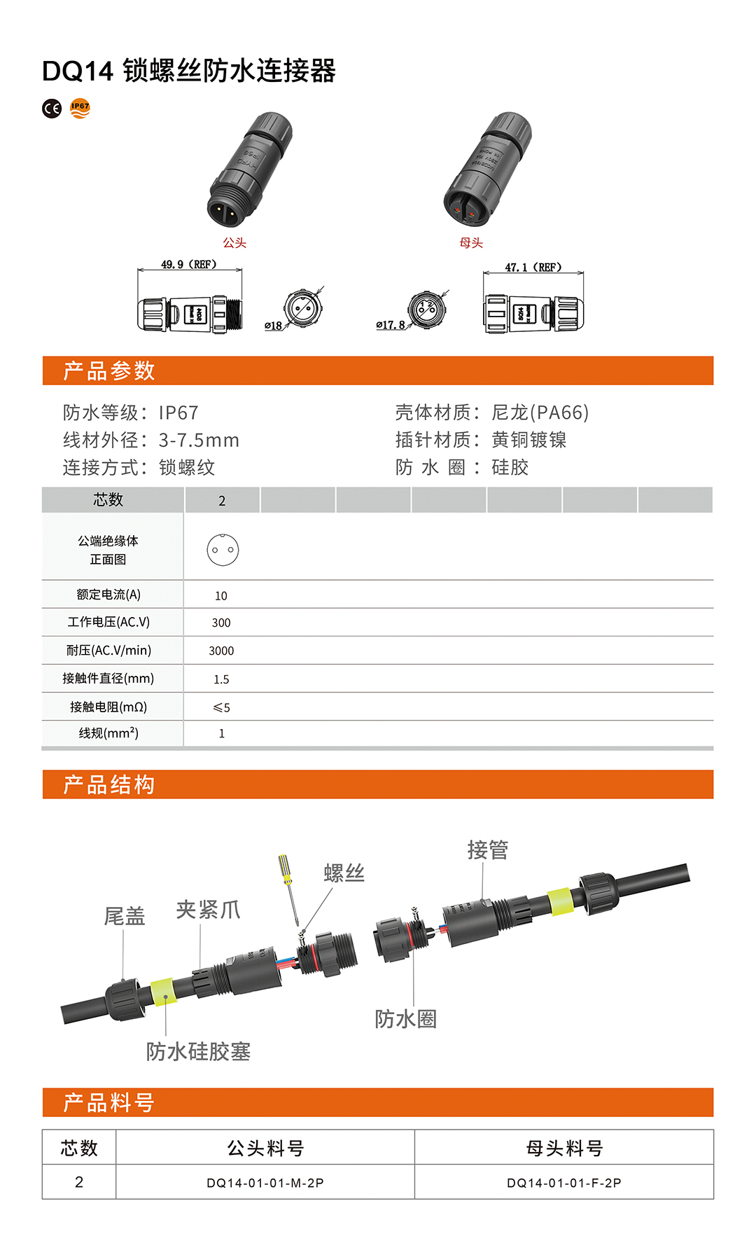 DQ14锁螺丝防水连接器