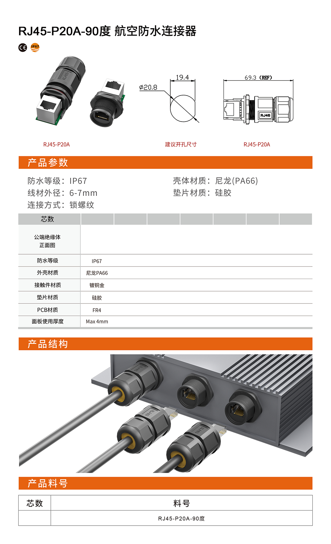 RJ45-P20A-90℃通讯连接器