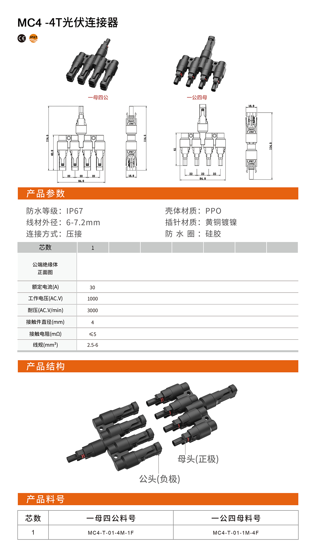 MC4-4T光伏连接器