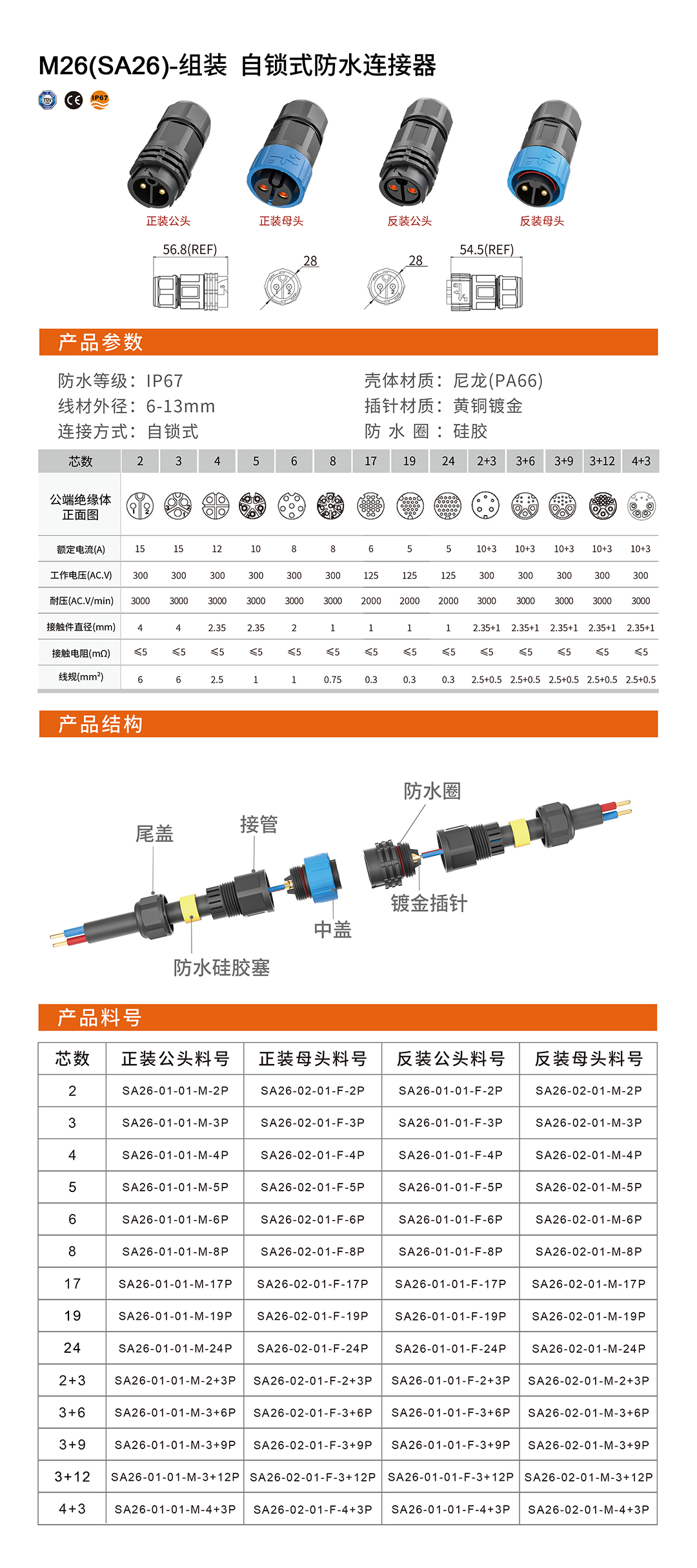 产品中心 > M26防水连接器-UL > SA26-组装自锁式防水连接器