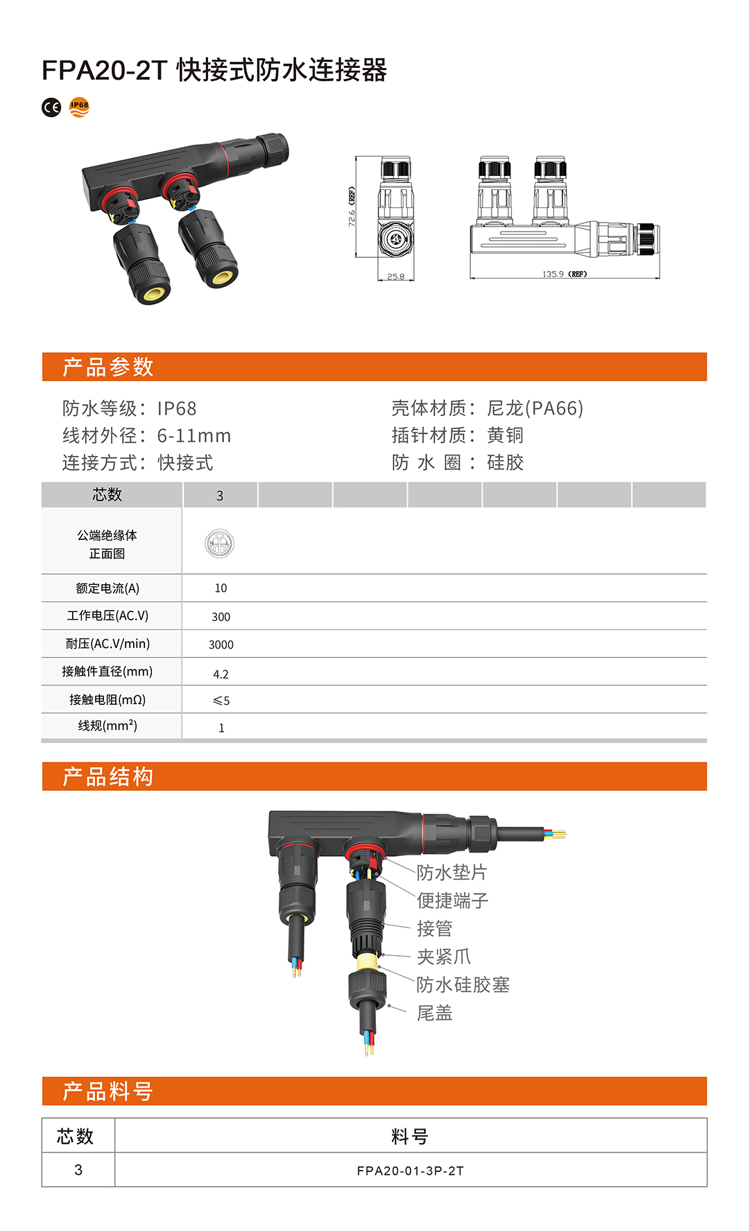 FPA20-3T快接式防水连接器